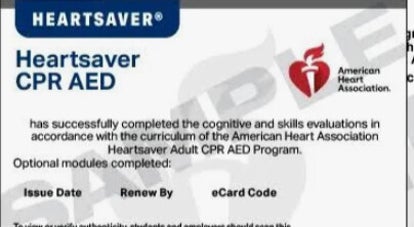 You will receive 2 BLS e-cards and 2 Heart Saver e-cards